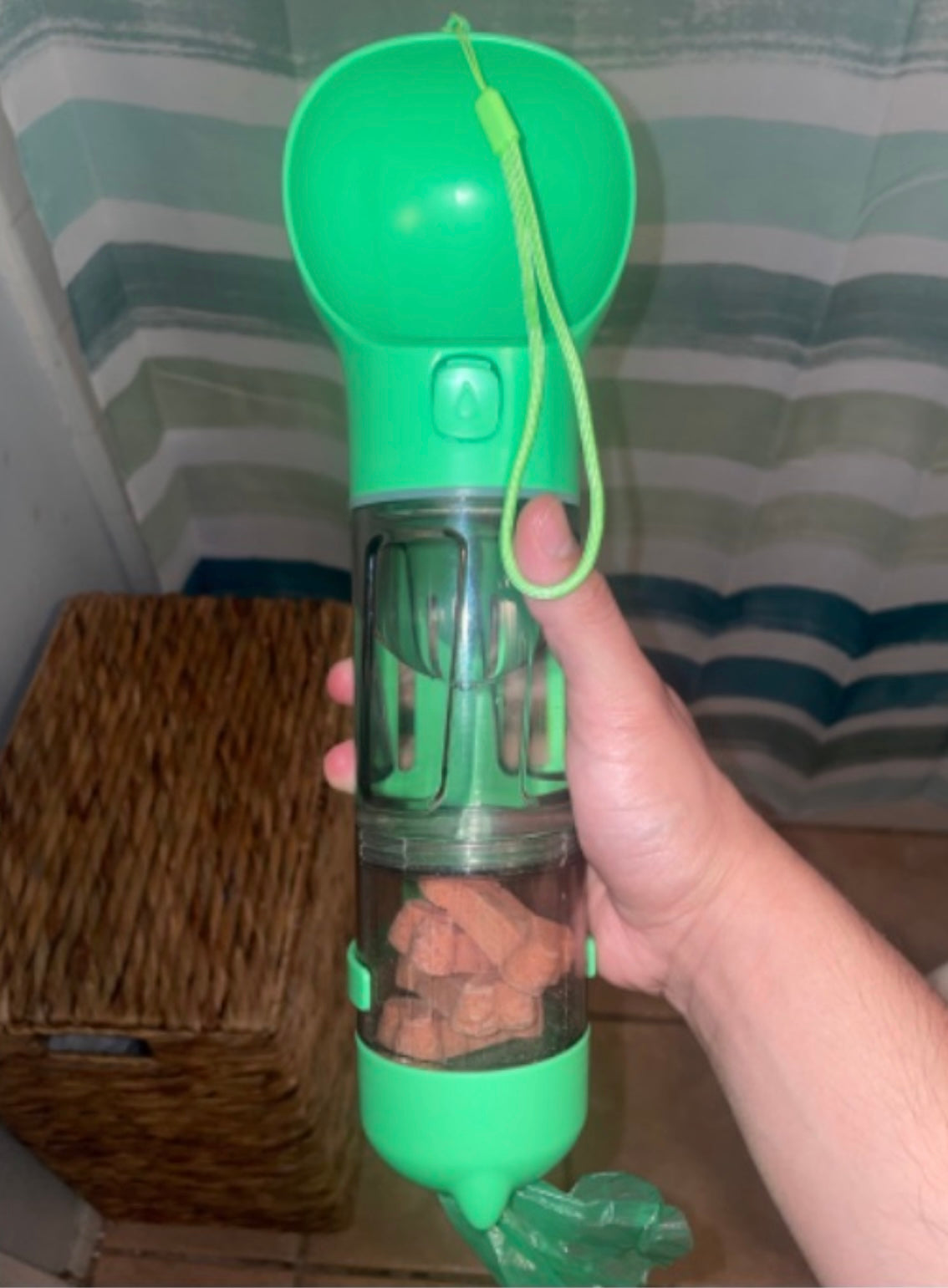This compact bottle holds fresh water, treats, and poop bags in separate built-in compartments, so you never have to juggle multiple items again. It also includes a detachable poop-scooping shovel for quick, clean pickups anywhere you go. Perfect for walks, hikes, and everyday adventures.